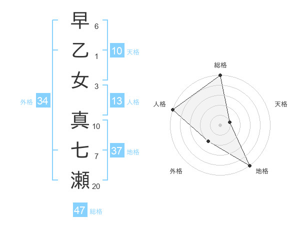 早乙女 真七瀬さんを姓名の画数から五運を鑑定