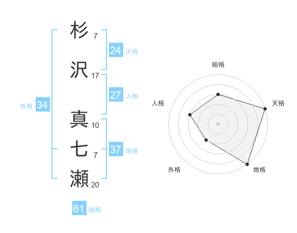 杉沢 真七瀬さんの総格は61画の3点!