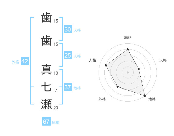 歯歯 真七瀬さんの天格は30画の2点!