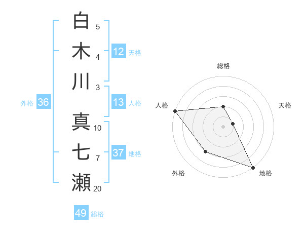 白木川 真七瀬さんを姓名の画数から五運を鑑定