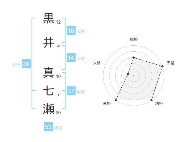黒井 真七瀬さんを姓名の画数から五運を鑑定