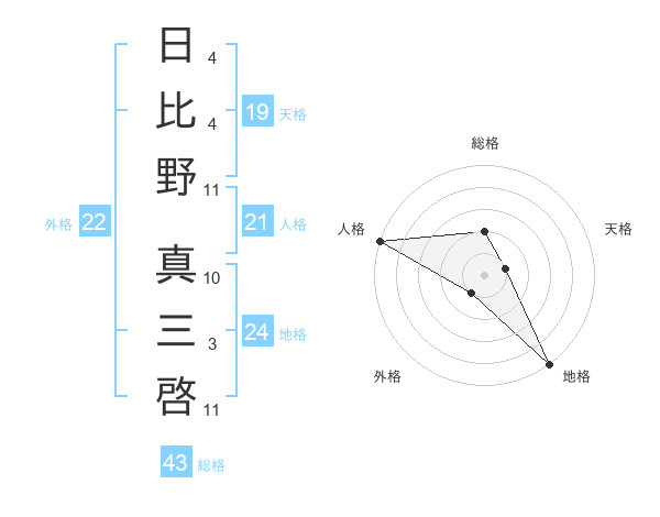 日比野 真三啓さんを姓名の画数から五運を鑑定