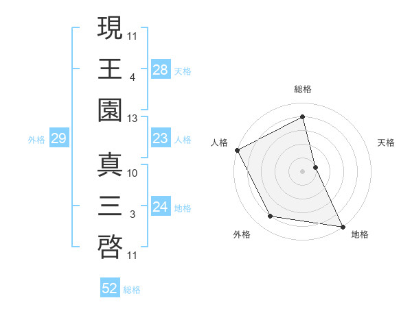 現王園 真三啓さんの外格は29画の4点!