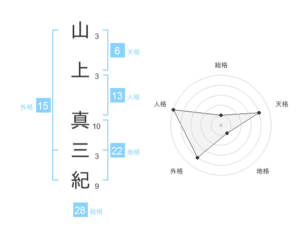 山上 真三紀さんを姓名の画数から五運を鑑定