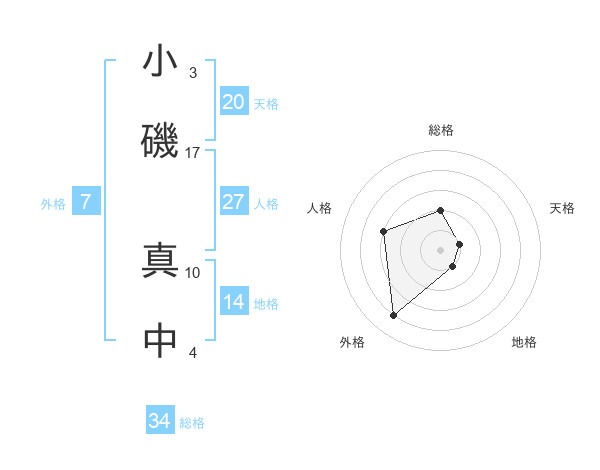 小磯 真中さんの天格は20画の1点!