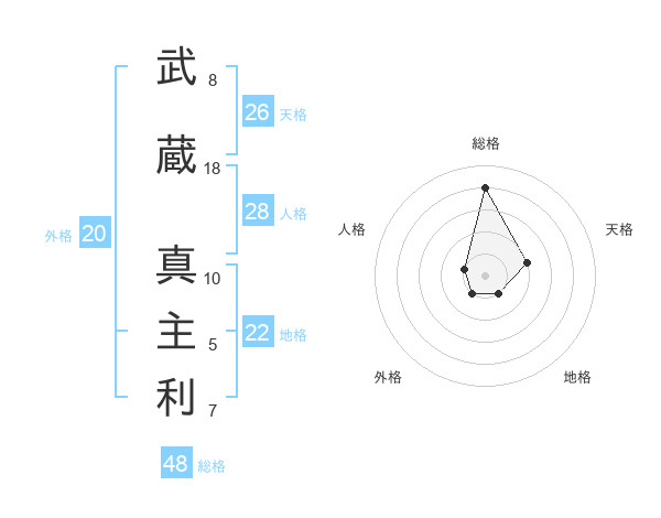 武蔵 真主利さんを姓名の画数から五運を鑑定