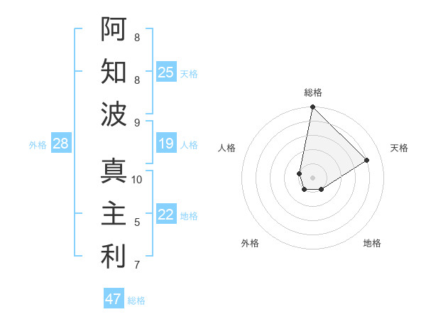 阿知波 真主利さんを姓名の画数から五運を鑑定