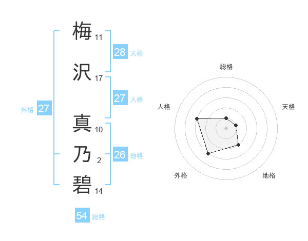 梅沢 真乃碧さんの外格は27画の3点!