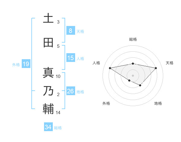 土田 真乃輔さんを姓名の画数から五運を鑑定
