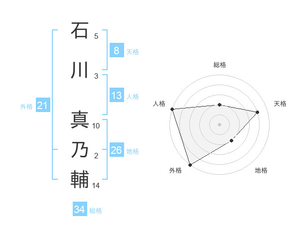 石川 真乃輔さんを姓名の画数から五運を鑑定