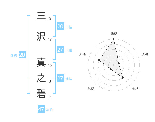 三沢 真之碧さんを姓名の画数から五運を鑑定