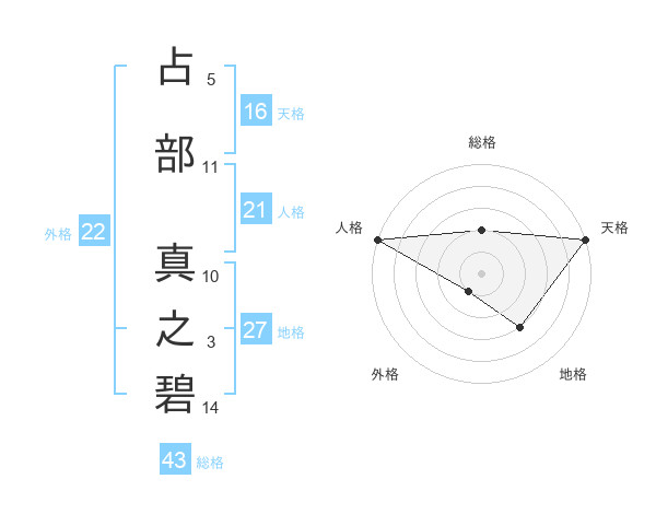 占部 真之碧さんを姓名の画数から五運を鑑定