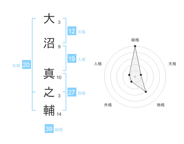 大沼 真之輔さんを姓名の画数から五運を鑑定