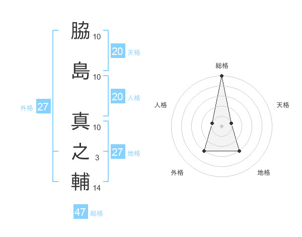 脇島 真之輔さんの総格は47画の5点!