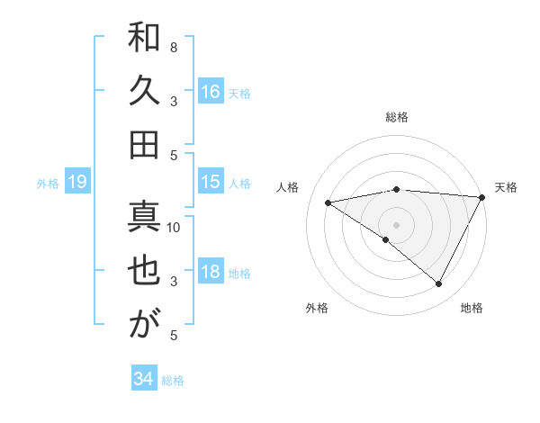 和久田 真也がさんを姓名の画数から五運を鑑定