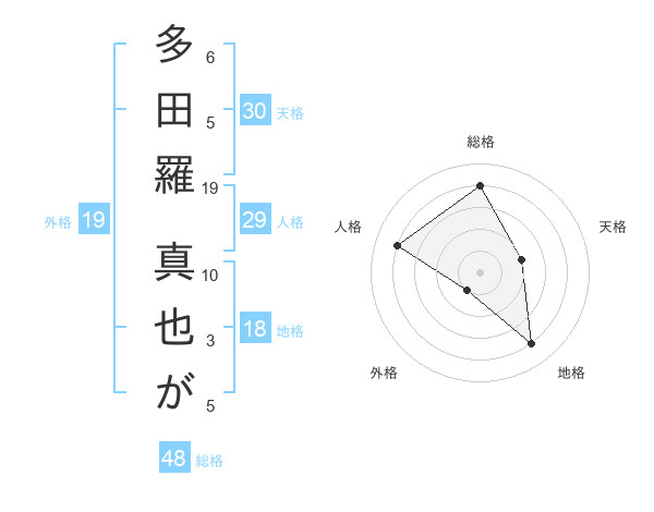 多田羅 真也がさんを姓名の画数から五運を鑑定