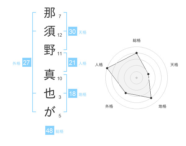 那須野 真也がさんを姓名の画数から五運を鑑定