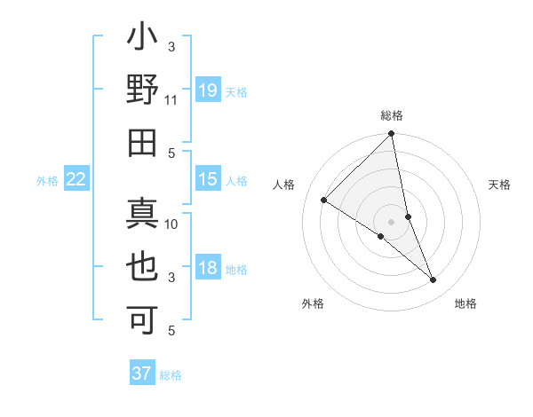 小野田 真也可さんの総格は37画の5点