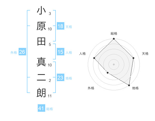 小原田 真二朗さんを姓名の画数から五運を鑑定