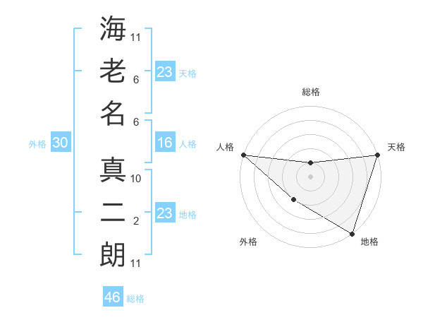 海老名 真二朗さんの地格は23画の5点!