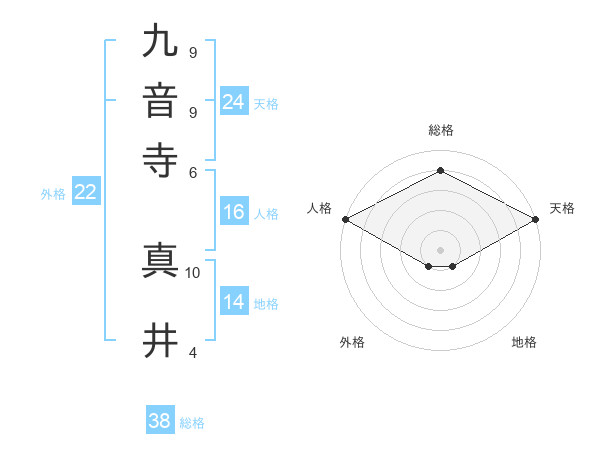 九音寺 真井さんの総格は38画の4点!