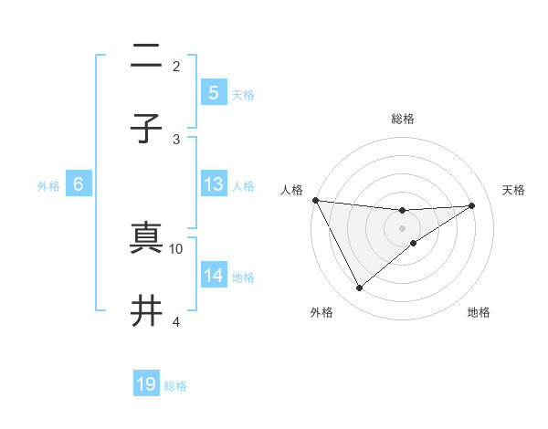 二子 真井さんの天格は5画の4点!