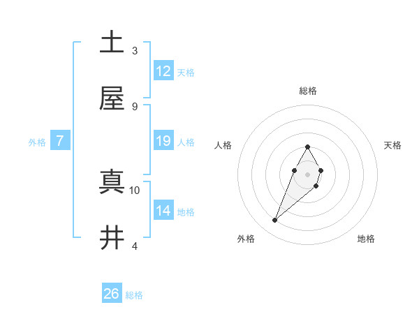 土屋 真井さんの総格は26画の2点!