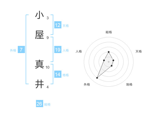 小屋 真井さんの総格は26画の2点!