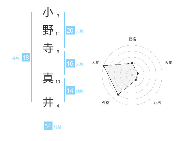 小野寺 真井さんの総格は34画の2点!