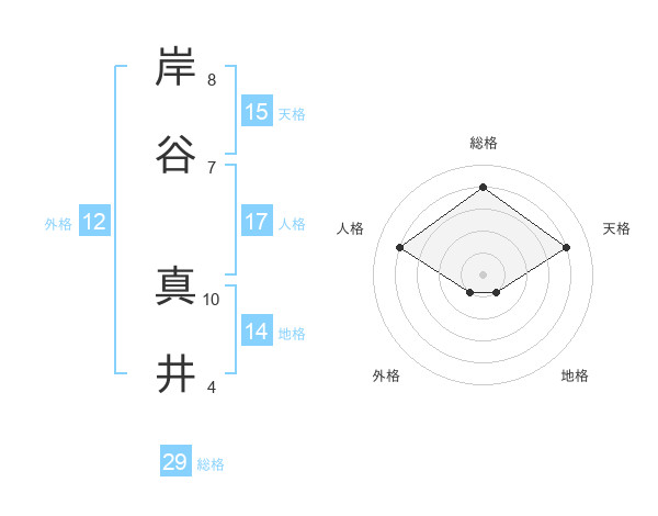 岸谷 真井さんの総格は29画の4点!