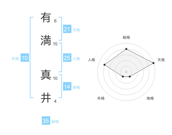 有満 真井さんの総格は35画の4点!