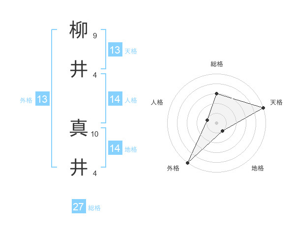 柳井 真井さんの天格は13画の5点!