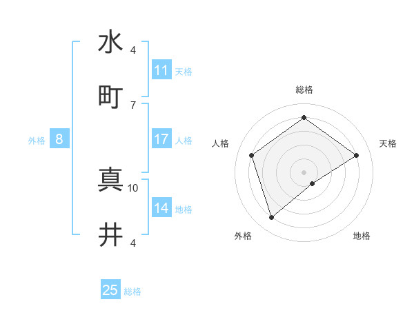 水町 真井さんの総格は25画の4点!