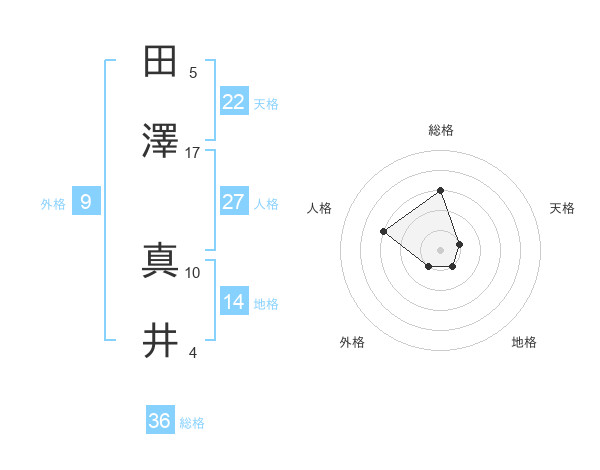 田澤 真井さんの総格は36画の3点!
