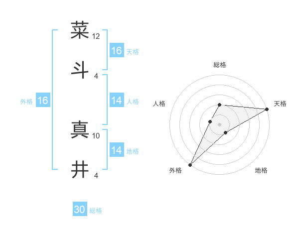 菜斗 真井さんを姓名の画数から五運を鑑定