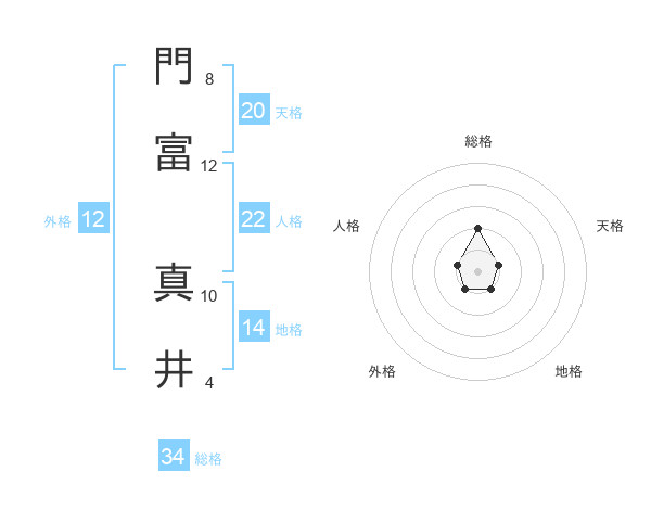 門富 真井さんの総格は34画の2点!