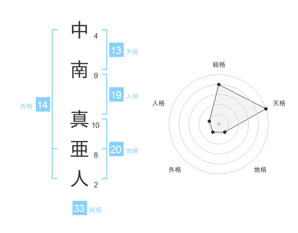 中南 真亜人さんの総格は33画の4点!
