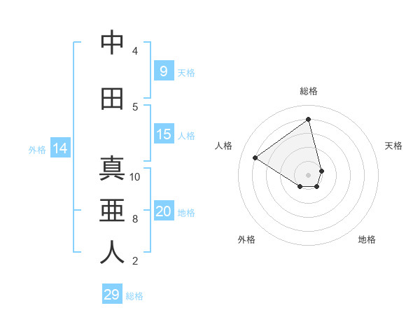 中田 真亜人さんを姓名の画数から五運を鑑定