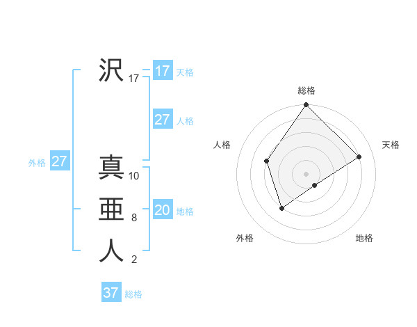 沢 真亜人さんを姓名の画数から五運を鑑定