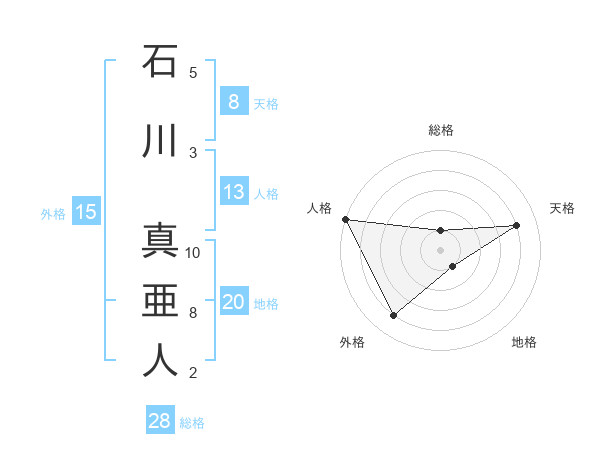 石川 真亜人さんの総格は28画の1点