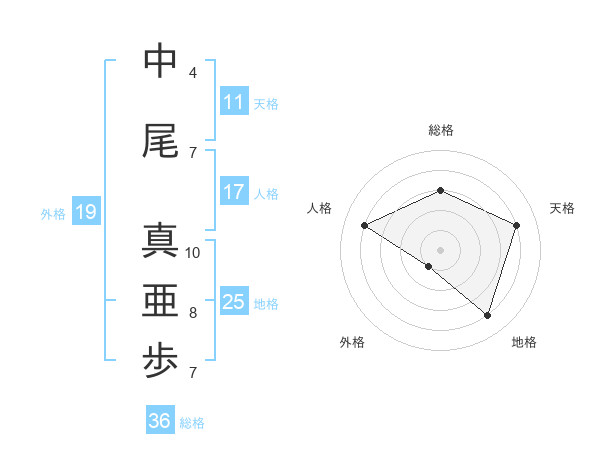 中尾 真亜歩さんの天格は11画の4点!