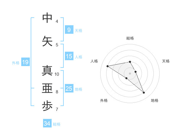 中矢 真亜歩さんを姓名の画数から五運を鑑定