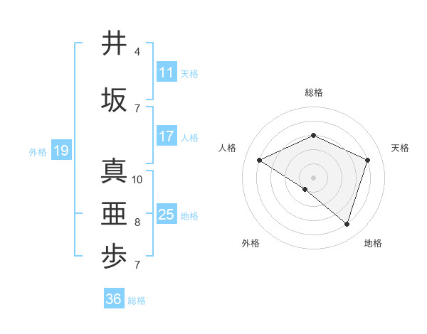 井坂 真亜歩さんを姓名の画数から五運を鑑定