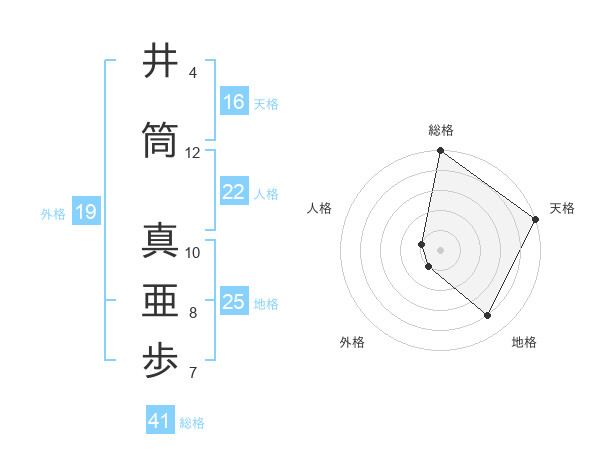井筒 真亜歩さんの天格は16画の5点!