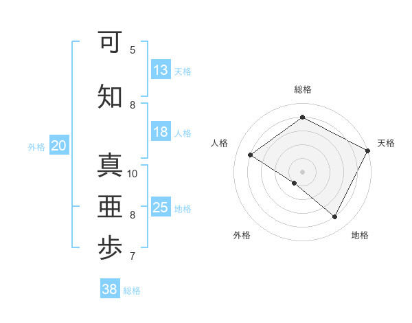 可知 真亜歩さんの総格は38画の4点!