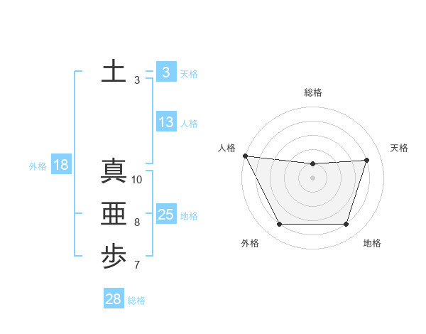 土 真亜歩さんを姓名の画数から五運を鑑定