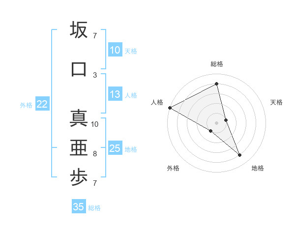 坂口 真亜歩さんの総格は35画の4点!