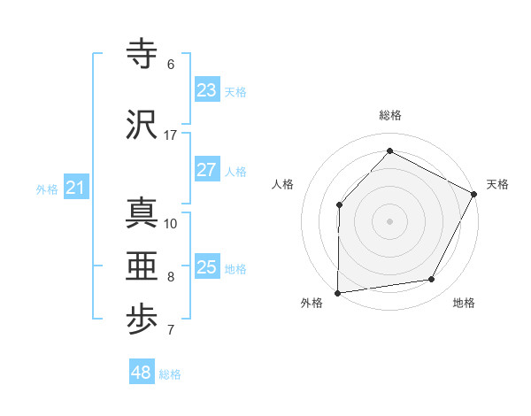 寺沢 真亜歩さんの外格は21画の5点!
