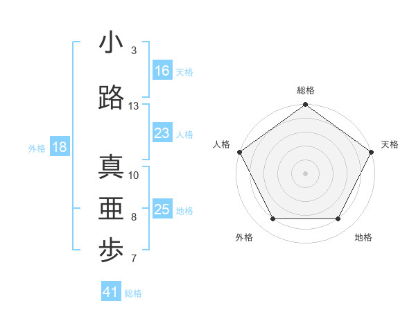 小路 真亜歩さんの総格は41画の5点!