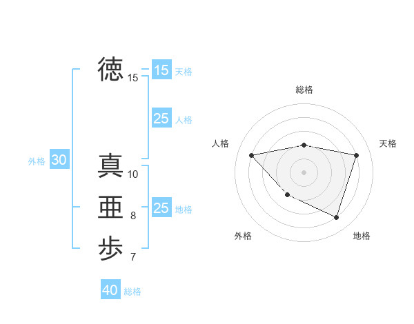徳 真亜歩さんの天格は15画の4点!